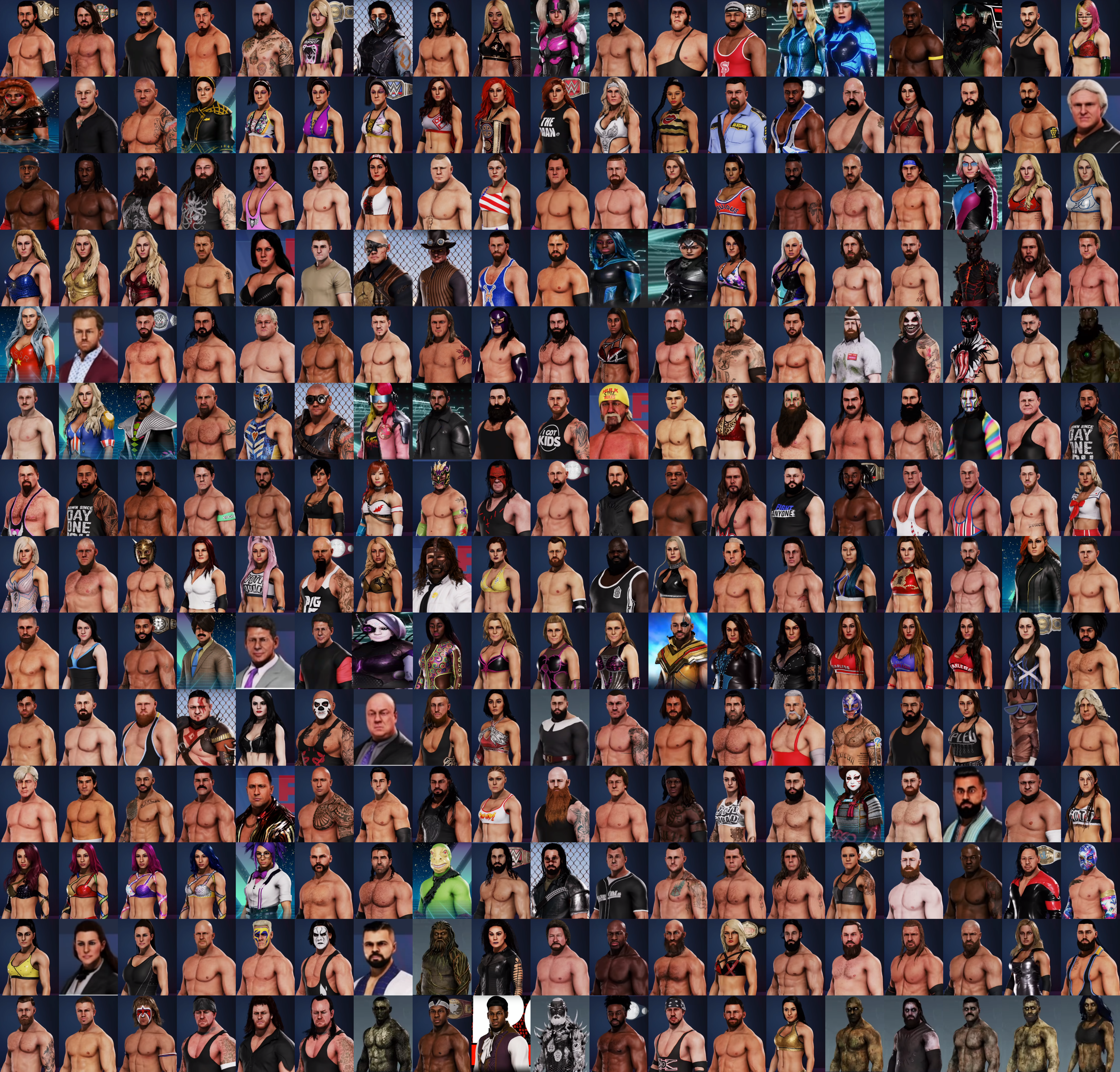 91 Legends & Alumni, 14 NXT Superstars, 45 Raw Superstars, 33 SmackDown Live Superstars & 100 Custom Superstars all come together to make a total of 283 characters. While the playable roster has increased, the overall roster size has decreased a little bit in WWE 2K17. Redone without alternate attires.Legends/Alumni Roster: Albert (DLC), Alundra Blayze, Andre the Giant, Arn Anderson, Bam Bam Bigelow, Big Boss Man, Big Boss Man '99 (DLC), Big Show '00, Big Show '99 (DLC), Billy Gunn, Bobby Heenan (Manager), Booker T, Bret Hart, Bret Hart '98 (DLC), Brian Pillman, Brie Bella, British Bulldog, Brutus Beefcake (DLC), Buddy Roberts (DLC), Butch, Cactus Jack, Cactus Jack '92 (DLC), Chris Jericho '01, Christian, DDP '92, Diamond Dallas Page, Diesel, Dude Love, Dusty Rhodes, Earthquake, Eddie Guerrero (DLC), Edge, The Godfather (DLC), Goldberg (DLC), Greg Valentine (DLC), Hunter Hearst Helmsley, Ivory (DLC), Jacqueline (DLC), Jake Roberts '91, JBL, Jim Neidhart, Jimmy Garvin (DLC), Kane '98, Kerry Von Erich (DLC), Kevin Nash, Kevin Von Erich (DLC), Larry Zbyszko, Lex Luger, Lita, Luke, Mankind, Michael Hayes (DLC), Mr. McMahon (Manager), Mr. McMahon '01, Mr. Perfect, Papa Shango (DLC), Randy Savage, Razor Ramon, Ric Flair, Ric Flair '88 (DLC), Rick Rude, Ricky Steamboat, Rikishi, Road Dogg Jesse James, The Rock, The Rock '01, Scott Hall, Shawn Michaels, Stardust, Stephanie McMahon '01 (Manager), Steve Austin, Sting, Sting '88 (DLC), Sting '91, Sting '98 (DLC), Sting '99, Stunning Steve Austin, Sycho Sid (DLC), Tamina, Tatanka (DLC), Tatsumi Fujinami, Ted DiBiase (Manager), Triple H '01, Trish Stratus, Typhoon, Tyson Kidd, Ultimate Warrior, Undertaker, Undertaker '00, Undertaker '91 & Vader.