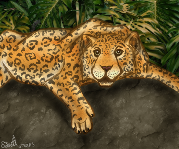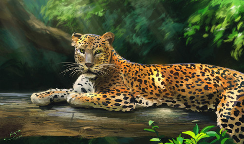 Artober day 22 - variegated 🐯A colorful leopard relaxing in front of some trees I guess ✨