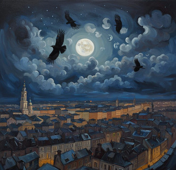 #acrylic #city #cityscape #clouds #dreamscape #fullmoon #night #nightsky #sky #surreal #traditional #traditionalart #acrylicpainting #traditionalpainting