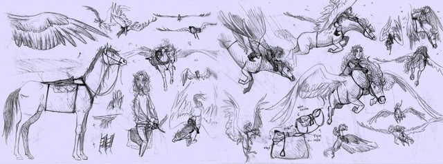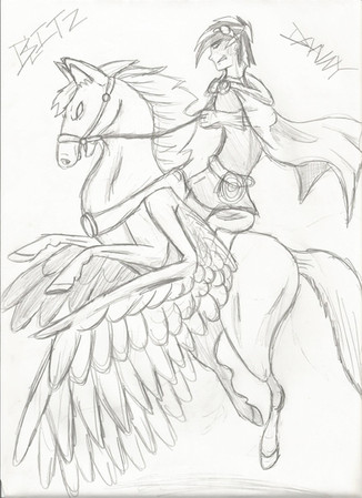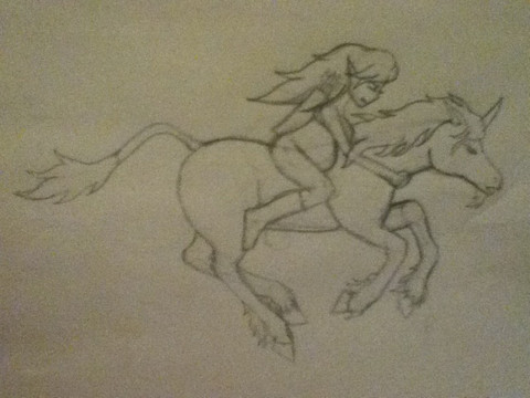 Necho on his flying horse Goldfax... Sounds much better in Danish -.- (Guldfaxe)Originally goldfax is a black mare with golden mane and tail, but I think I want to change the golden to another color, making it more naturally.
