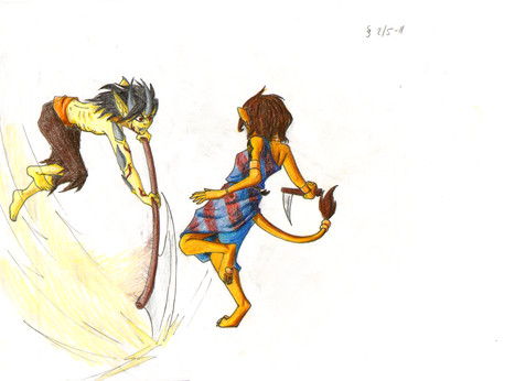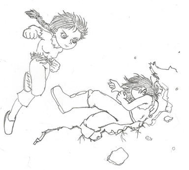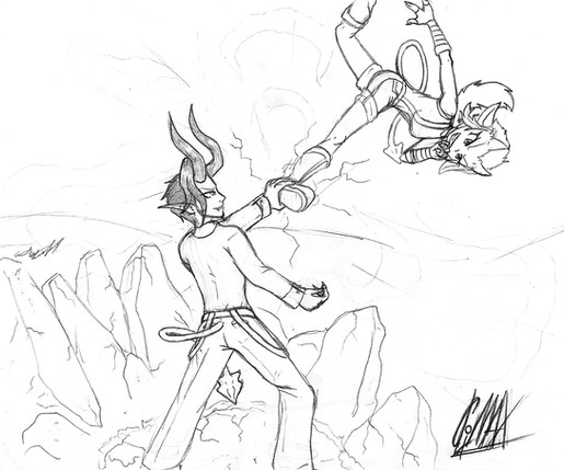 Necho and Katlego's first meating. It had a huge 'impact' on Necho .... Bad pun is bad -.-;Played around with some new ink i bought, and tried a bit of comic-ish, manga-ish, something-ish shadows.