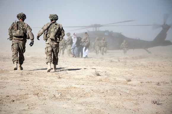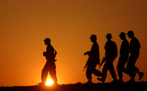 I'm guessing, by the helmets and the vehicles in the back of shot, that they're Israeli soldiers?