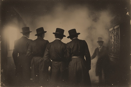 This photo has great repetition with the 3 people on the left and then a great break with the person on the right having his hat tilted. I wonder if this wouldn't have been better if instead of the person with the tilted hat being at the end he would have been the 3rd person. It does look like however that there wouldn't have been a good way to do this, I can't tell is there another person to the right of the guy with his hat tilted?