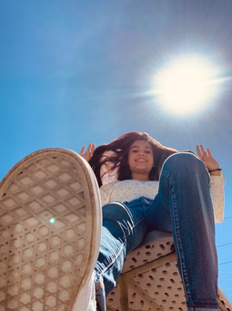 She is more than cute and the perspective is a great one, on the ground looking up which seems to delight her.