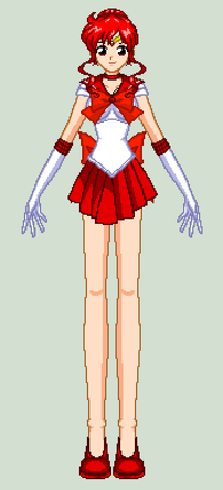 Kīchigousagi is the daughter of Ichigousagi(Sailor Strawberry) and the Grandaughter of Kousagi(Sailor Parallel Moon). She came upon her powers at a young age just as her mother did. She even has a cat companion named Rosa who is one of the daughters of Fresa. She and her twin sister (Aokīchigousagi) are both sort of klutzy as well, only they are more responsible and are very close as sisters. Although they have their arguments, they always make a great team. Out of the twins, Kīchigousagi is the more childish one.