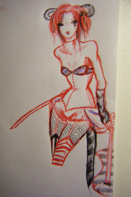 Yet another demon female thing. Her name is Vidunder. Vidunder means monster in... I don't know, Swedish, or something.The tattoos on her body can come off of her and attack. She can fly. The usual stuff. She's the silent type. Calm, cool, collected, and calculating...