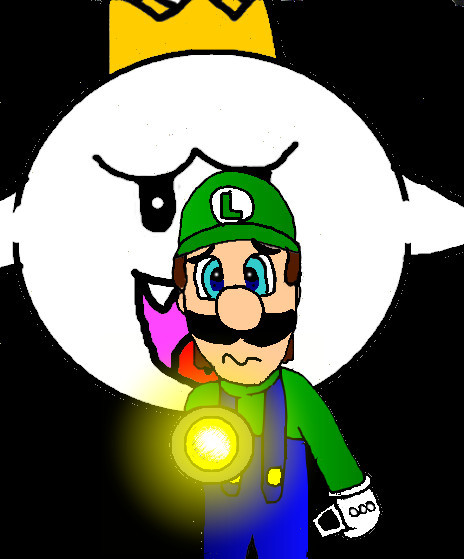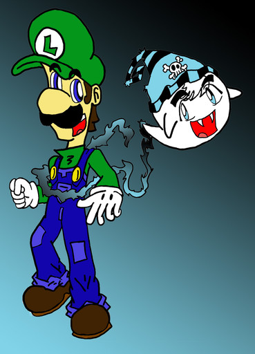 LOLZ i love Luigi's expression Don't look back or the little boo is gonna get cha! Love it and I love the backround coloring