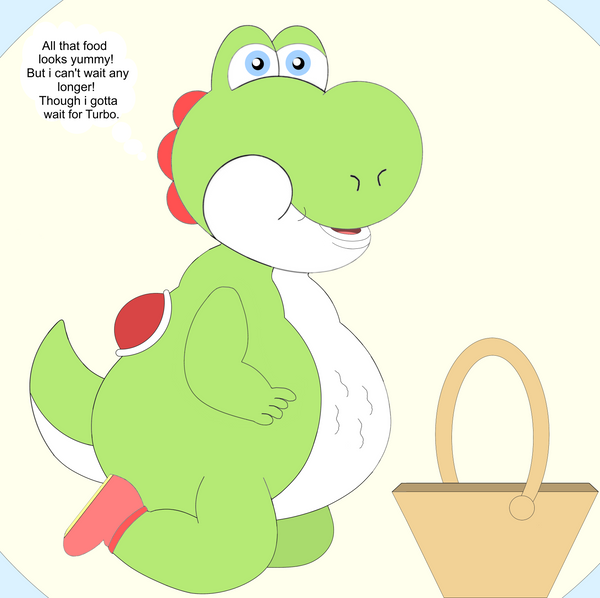 Yes thatβs the actual size of the basket. I was originally going to add shading but Iβll do that feature in future art. Gotta test it first.Cinnamon just finished 64 cinnamon rolls and a couple jars of honey. After his big lunch, he sits back against a tree, admiring his big belly. It really makes him look like such a stuffed and happy Yoshi.
