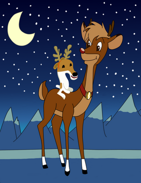 A fanart of Rudolph from the 1998 movie called "Ruldolph the Red-Nosed Reindeer". (Bottom right)