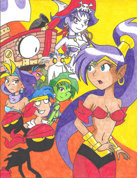 So I wanted to draw a picture with all six of them in a fan art piece, but of course focus on that rivalry between Shantae and Risky Boots. Because as long as the games do well, and they should, that rivalry will scuttle on until ad infinitum!