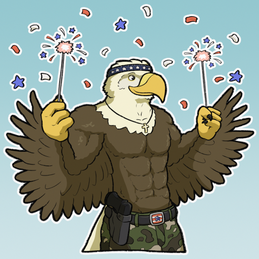 #digitalart #bird #furry #anthro #anthropomorphic #avian #bald #baldeagle #confetti #cross #eagle #fireworks #gun #pistol #sticker