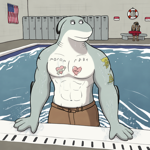 #anthro #anthropomorphic #fish #furry #hammerhead #shark #swimming #tattoo #underwater