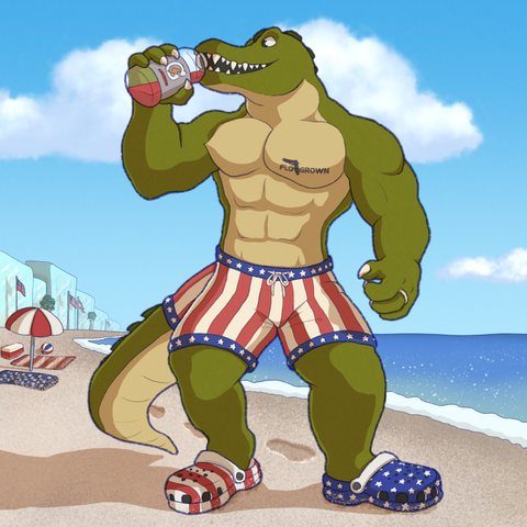 A drawing I made as an attack on Art Fight. The character is a fan of Elvis Presley so I made his swim trunks banana, peanut butter, and bacon.