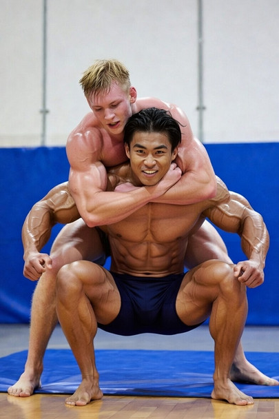 #body #acrobatics #acrobats #beefy #digitalart #gymnastics #heavy #men #musclemen #muscles #muscular #piggyback #piggybackride #shoulderride #splits #squats #strength #stunt #weighted #workout #sizedifference #featsofstrength #liftandcarry #musclebear #featofstrength #muscularmale #forcedworkout #heavyride