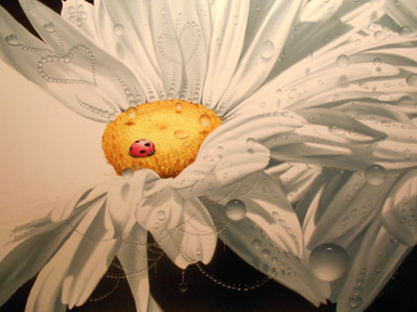 Awesome! I love the splash of color the lady bug provides in contrast to the stark grayness of the rest of the pictures. Lovely!