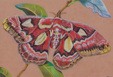 Study of a elephant Hawk-moth.Coloured pencils on paper, 42x30 cm.