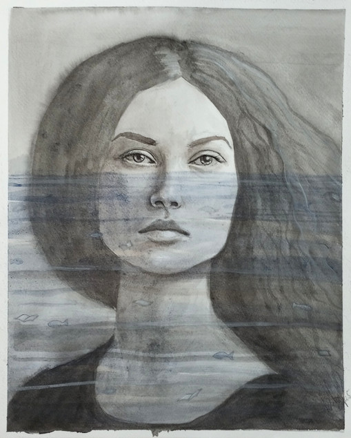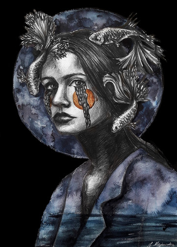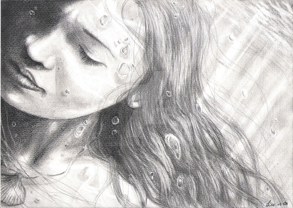 #fishes #greeneyes #hair #pencildrawing #portrait #portraitgirl #traditionalart #underwater