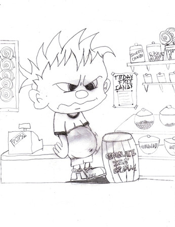 Augustus Gloop, the first to get his comeuppance in the factory.