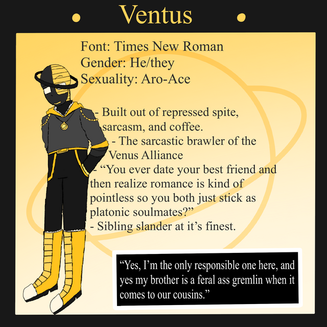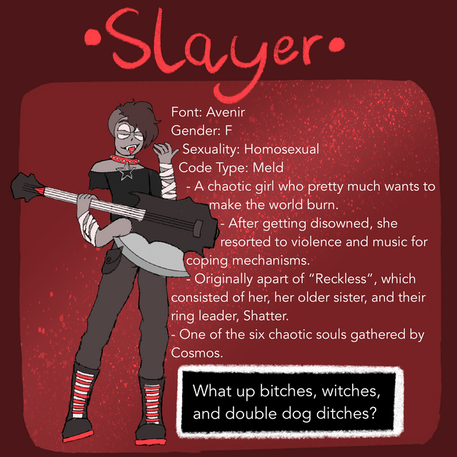 I've never actually had a reason for why Fall was in the Venus Glitches back when I first made the group. And I still don't. I chock it up to spite of Cosmos mostly, or maybe it's Fall's way of being defiant of his parents expectations similarly to Cosmos, but quite honestly I feel like he just acts on impulse to see what happens. Or it's spite of his parents. I really don't know, and I will never know. Which is fun because I can do whatever I feel like to motivate his character and it can be as chaotic and stupid as I want.