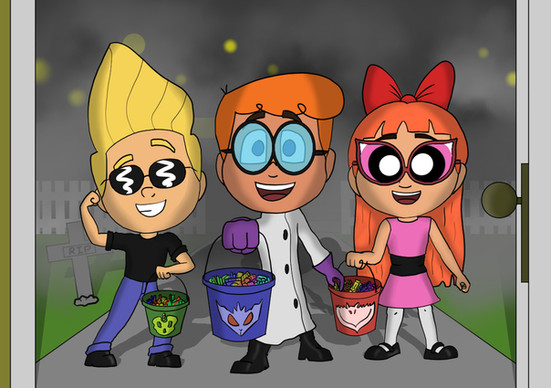 Here's a piece that I've wanted to create for a while, but had always been put off with the prospect of having to draw all nine characters at once. Drawing objects and scenery is easy enough, but drawing characters is time-consuming like nobody's business; this took me a long time to make.