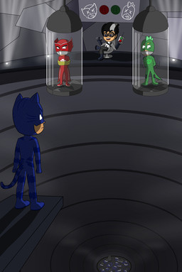 #amaya #cartoon #catboy #connor #disney #escape #fanart #gekko #gown #greg #hiding #lair #masks #meeting #owlette #pj #secret #sneaking #pjmasks #laboratory #hospitalgown #pj_masks