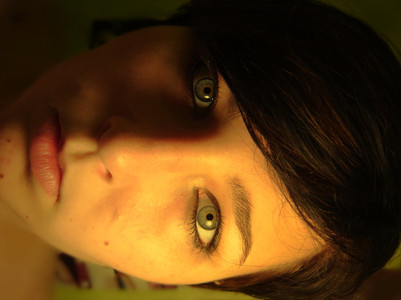 I really love the vibrant greens -- and how it unifies the picture. I also love how the strands of hair are spread. Perspective from which this is shot really works.