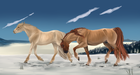 Team Spiffy camped with a few members of other teams for the night. The next morning they found the ground almost frozen solid with ice and sludge. The horses where saddled and it seemed like a fine morning, this due to no rain or snow for what seemed like the first time on the trail. Siranni mounted Salthzar first, and as Gabriel stuck her foot in the ice cold stirrup, her right foot slipped on the frozen ground and she fell hard onto the cold hard snow. As Gabriel tried to get back the wind that was knocked out of her, she could hear Siranni dying of laughter. The fall was more embarrassing than painful, but painful none the less.