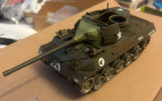 My oldest daughter has been wanting to build a tank, or at least something tank-adjacent. I have a particular affinity for the mighty and underappreciated M18 Hellcat tank destroyer, so here we are. The fighting compartment was primed in black, then received a top-down spray of white to give a shadow effect on the final drive and whatnot. I then showed my daughter how to drybrush and let her go to town on the deck of the fighting compartment. And then I gave it an oil wash. So now it looks reasonably scuffed, dirty, and oily, plus my little girl is getting her proverbial hands dirty with it.Related content