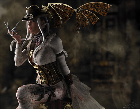 #daz3d #forest #ginger #hat #mask #tophat #bluebutterfly #butterfly #fantasy #freckles #gasmask #redhairedgirl #redhead #woodsforest #daz3dstudio #gingergirl #plaguedoctormask #irayrender