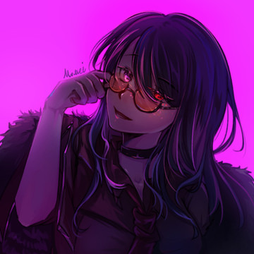 Do not copy/steal/use/trace/repost/etc...my art without permission!!Since I've done two blue-centered drawings, now we goin red! I had some trouble at first with separating the girl from the bg since both have dark colors, but once the white lines came in it was really satisfying! This is a one-off character but I do like her idea. The tinted glasses were pain to draw and position but I'm glad I did it yay