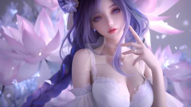 #fantasy_character #long_hair #anime_girl #elegant_girl #purple_hair #purple_eyes #soft_focus #high_resolution #side_braid #pastel_theme #genshin_impact #aesthetic_portrait #dreamcore_aesthetic #raiden_shogun #beautiful_anime_girl #viral_art #soft_curls #delicate_features #sakura_background #ethereal_mood #cinematic_portrait #kimono_aesthetic #dreamy_expression #cg_render #floral_hairpin #romantic_lighting #soft_girl_style