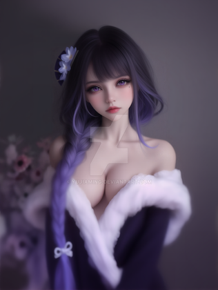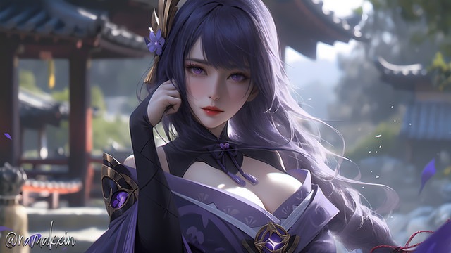#fantasy_character #long_hair #anime_girl #elegant_girl #purple_hair #purple_eyes #soft_focus #high_resolution #side_braid #pastel_theme #genshin_impact #aesthetic_portrait #dreamcore_aesthetic #raiden_shogun #beautiful_anime_girl #viral_art #soft_curls #delicate_features #sakura_background #ethereal_mood #cinematic_portrait #kimono_aesthetic #dreamy_expression #cg_render #floral_hairpin #romantic_lighting #soft_girl_style