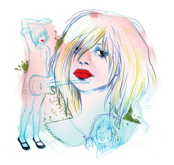 this composition is very effective, i especially love how the pink of her hair contrasts with all the other colours.
