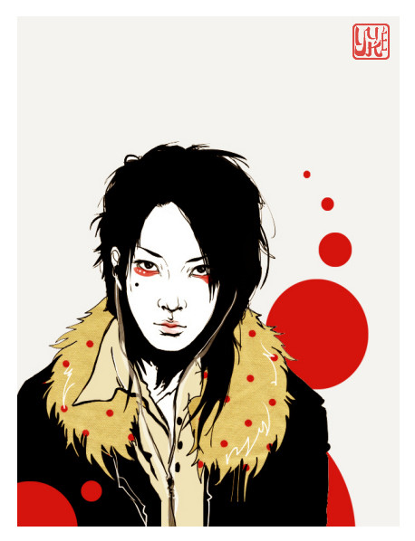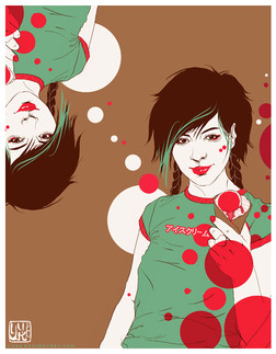 wow. so awesome. i love all of the negative space that you leave in your pictures, and how you don't always use white and black, but rather something different, like in this picture it's gray and black. very cool~ and the third color choices always go really well with the picture~ not to mention how perfect the facial features always look~~ beauitful work!
