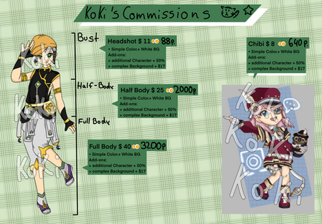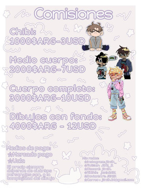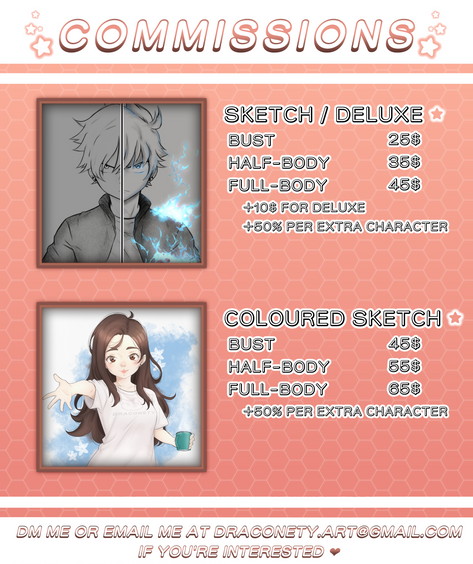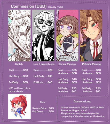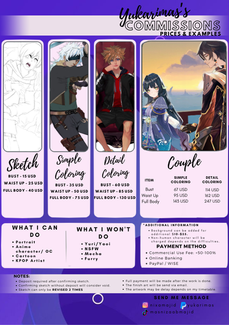 My price table there, commissions are open, share, tag friends, it helps a lot!For drawings with multiple characters interacting with each other, we combine the price
