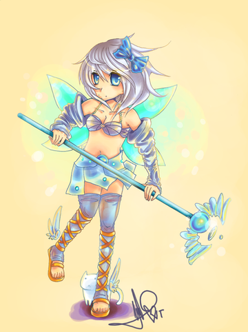 wow, this piece is just amazing, the hair is just so flowy *w* and everything is really shiny aahhhh, is really really cute :"D, I also really like the coloring of her skin you made it have this smooth feeling <3