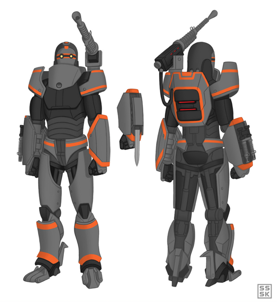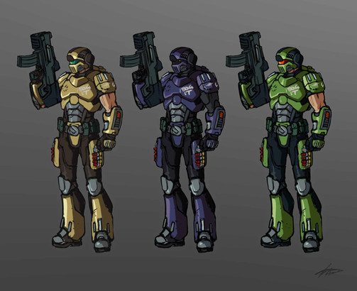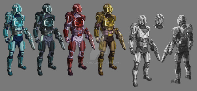 A design I've done for a storyline. I don't know what will become of this line but well... we'll see!So this is the first design for a sci-fi armor. The story takes place around 2300 AD. I'm not going to get into the details but these armors are used by the Federation Star Marines and the Star Force.