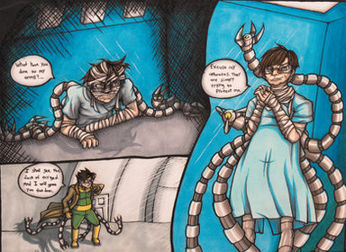 *makes inward whistling laugh noise through nose* oh HAH that middle panel...i love the realism you give Ock..and the TENTACLES!