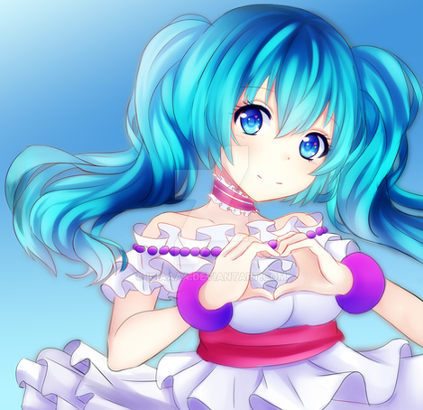I tried to get used to digital anime art more because I really sucked at it when I tried this a week ago~ So I used thinner lines and practised some kawaii faces by references and I'm happy with the result ^-^She's actually supposed to be Hatsune Miku in different clothes but since almost only her pigtails and clothes define her design I don't know how obvious it is xD