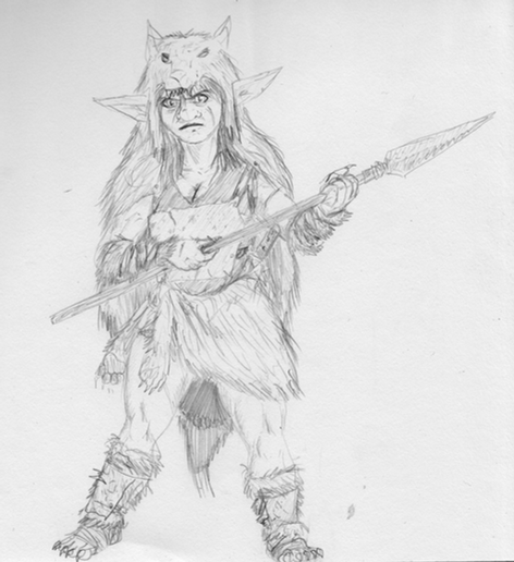 Shank Wartooth is legend among the Warwolf clans of the surviving world... she was one of the Three to blow the Great Horn and warn the rest that their purpose was upon them.A slip of a girl of seventeen (if 'slip' can be used to describe a 400lb, 7' 8" Warrior-born Brute female) at the time, she lived and fought through the horrors of the Event and was nigh unmatched in her ferocity and tenacity.