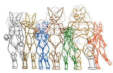 Still on the experiment/practice trip... trying what seen before with the all-round view, now with different body types^^Well the result so far... actually learned a few things while drawing it