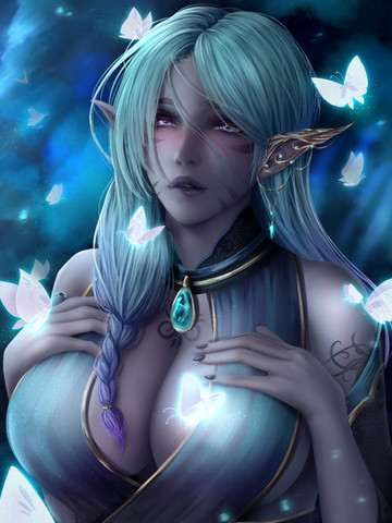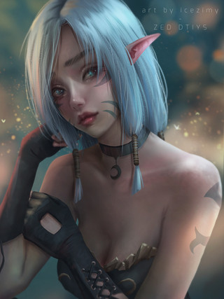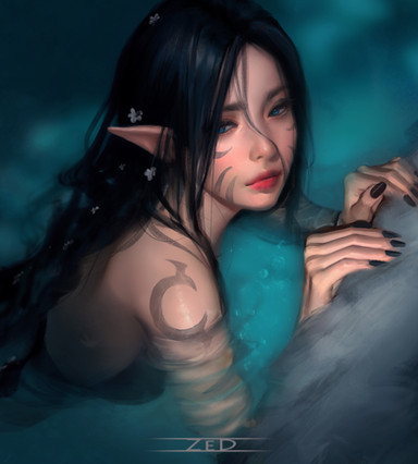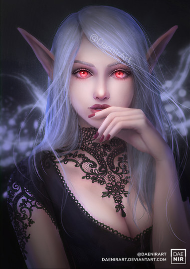 A different elf, I really like the veil that dominates the whole drawing and the eyes of the lady's ice. Cool!