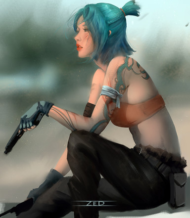 I really like how you did the hair and those small red linesΒ It's such a cool idea and interesting to look at. And the eyes looks very clean and softΒ Β Β Β Β