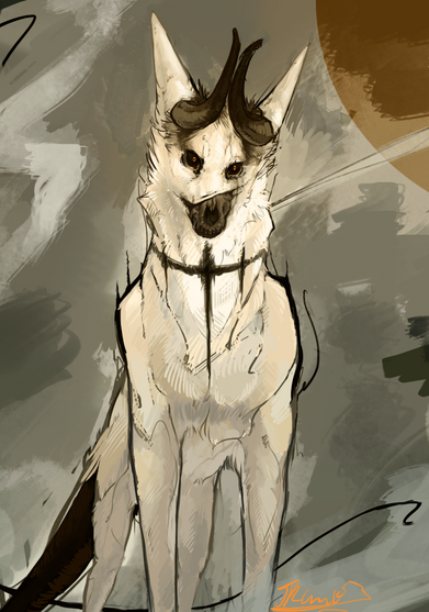 If you're wondering what the title is, Cลตn Annwns are spectral hounds in Welsh folklore, often seen with a hag(lol). Which seems to fit Emmett pretty well.Just wanted to try out some photoshop painting to get back into drawing since I haven't been too productive lately. Funny how me trying to be productive results in another Emmett-floating-in-a-dark-background picture /cry