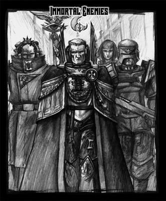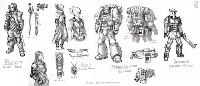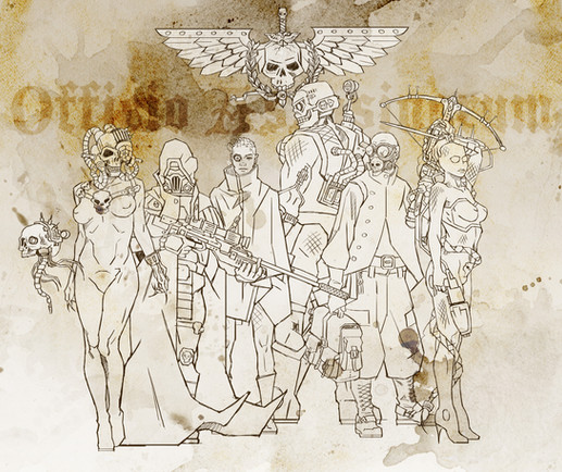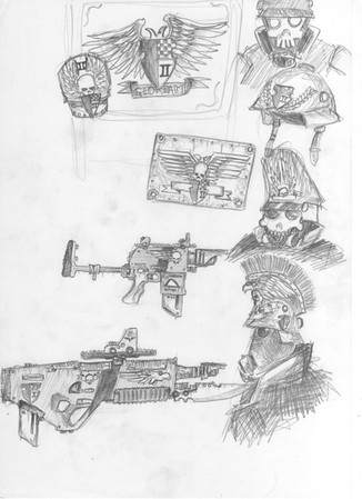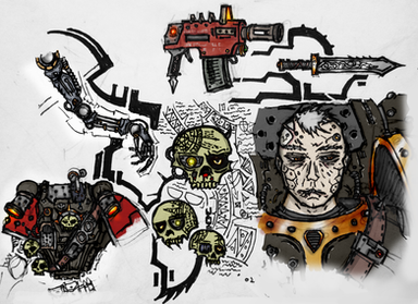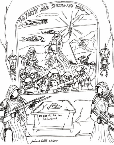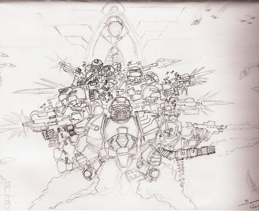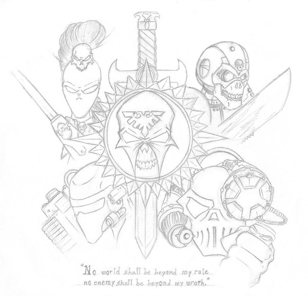 This is some more of my fan art for WarHammer 40k. It involves two tau fire warriors, one looking around the corner to see if the coast is clear. While the other waits for his reply. They both are completely oblivious to the Necron Wraith ( just one of the many units of the Necrons and a bad mother****, that can phase in and out of reality. Allowing it to move through any type of solid object, Yikes!) phasing throught the wall behide them. So as you can see these tau are in a world of hurt...and death. I was going to color it but since I havn't submitted anything for awhile I decided that the sketch will do for now.Fear the Necrons, their number is legion, their name is death