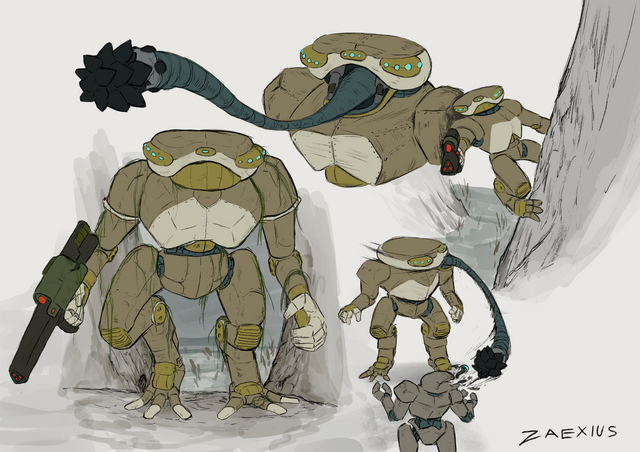 Huge beasts that dwell deep within the Rotten Lands. Their screams, capable of making your ears bleed if you are close enough, are capable of alerting hundreds, if not thousands, of walkers and other contaminated creatures for miles around.Despite their stocky appearances, they can go on runs capable of rivaling top-speed vehicles for a few seconds. Enough time to lash out at unprotected pilots and tear him apart, with rows of teeth reaching from his head to his pelvis.