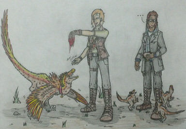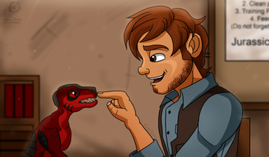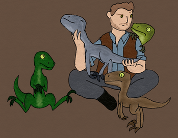 A training meeting between Linus Grady and his father, Owen Grady with their Velociraptors, Red and Blue.An art request for TheReedRaptor.