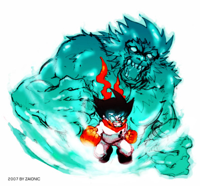 this reminds me of Dragonball. i like the glowing effect in the coloring.