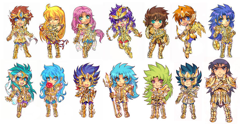 Set1 has Aiolia, Shaka, Mu, Milo, Dohko, Aiolos, Saga.(old)