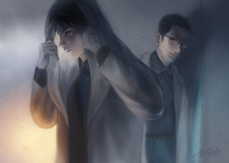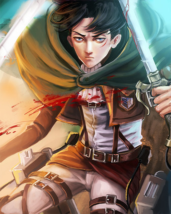 Yesss I saw it on your tumblr, and I must say I am completely in love with your colors! The green cloak/orange coat look so good, I love the blue shading so much <3 The background color/gradient is also such a great choice. And the pose is really good, I'm afraid to draw snk because I can't draw dynamic poses like that and I feel that's what snk fanart should be :') Very gorgeous Levi